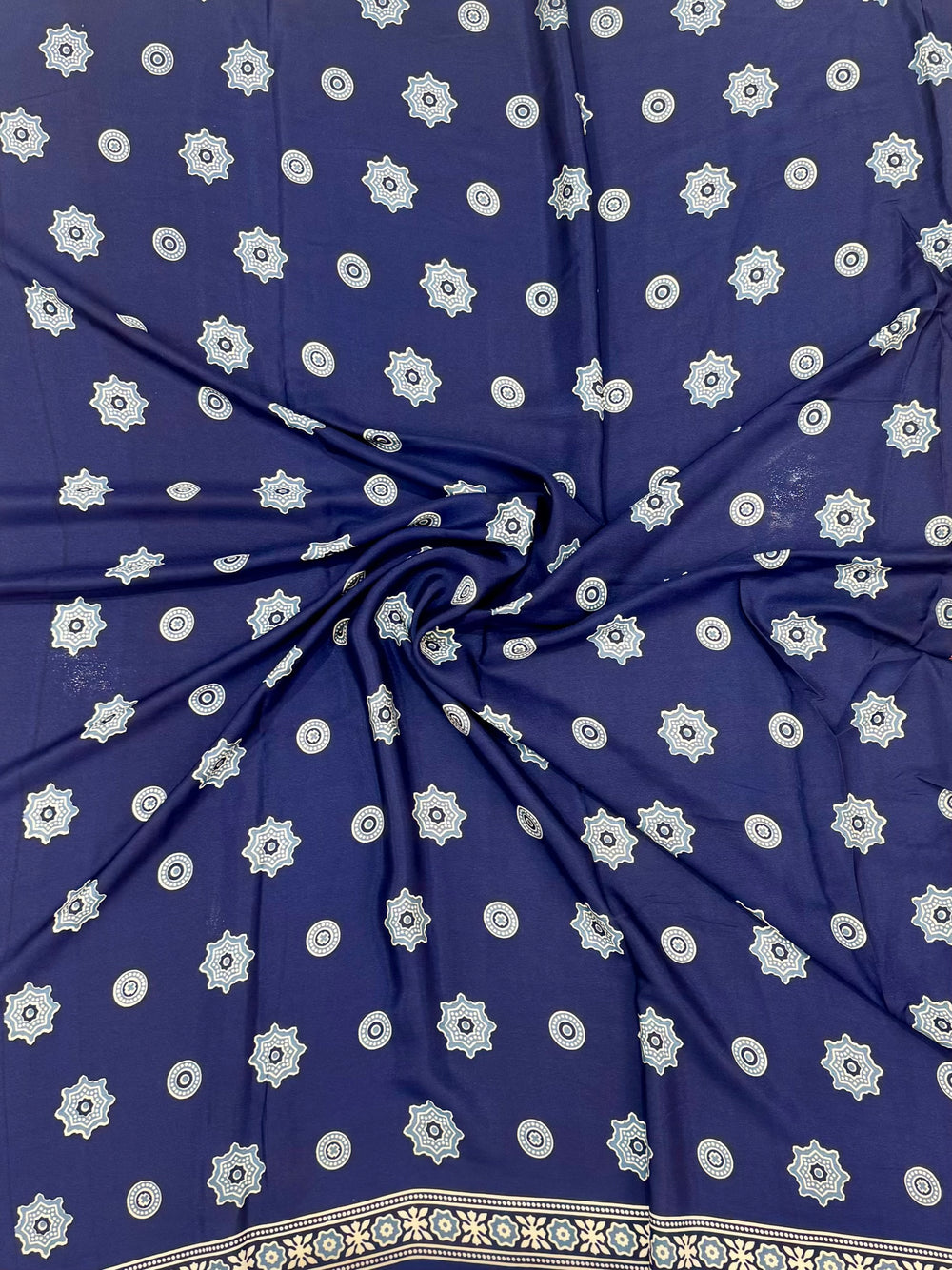 Teal Blue Handblock Printed Saree with Unique Bandhani-Style Ajrakh