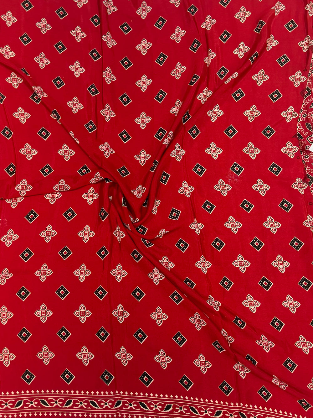 Vibrant Tomato Red Modal Silk Saree with Circular Ajrakh Motifs