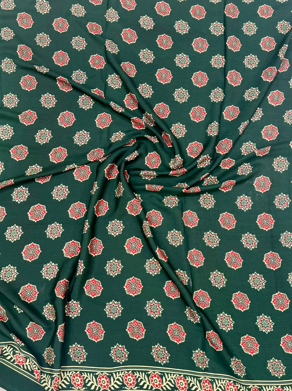 Emerald Green Pure Modal Silk Ajrakh Saree with Traditional Handblocks